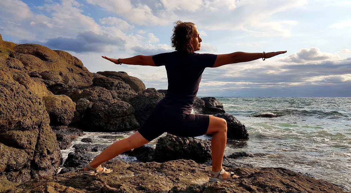 El Guerrero II fortalece piernas, glúteos y brazos, mejora el equilibrio y la concentración, y abre las caderas. Se trata de una postura de poder y presencia. Para entrar en ella, el talón delantero debe alinearse con el arco del pie trasero y la rodilla delantera queda sobre el tobillo, evitando que se desplace hacia adentro. Los hombros se mantienen relajados y los brazos extendidos paralelos al suelo.
